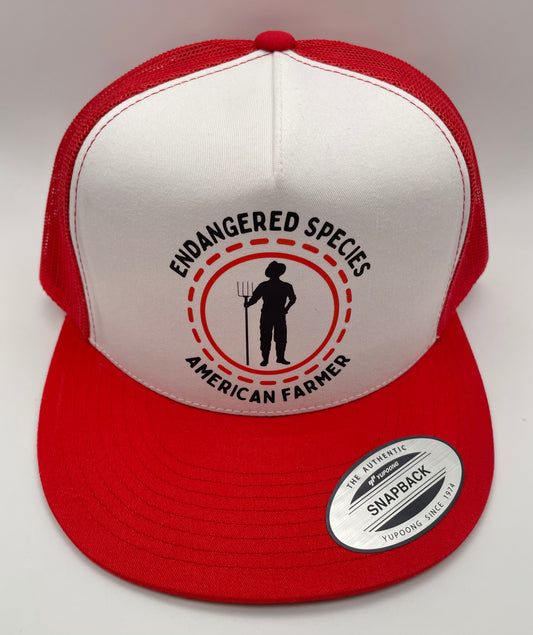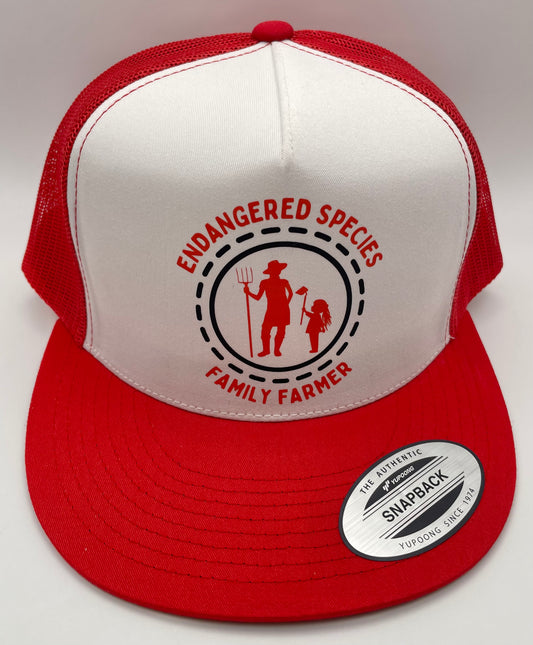 Endangered Species (man) Classic Flat Bill Trucker Hat - red & white