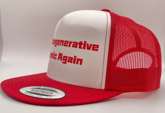 Make Regenerative Organic Again Classic Flat Bill Trucker Hat - red & white