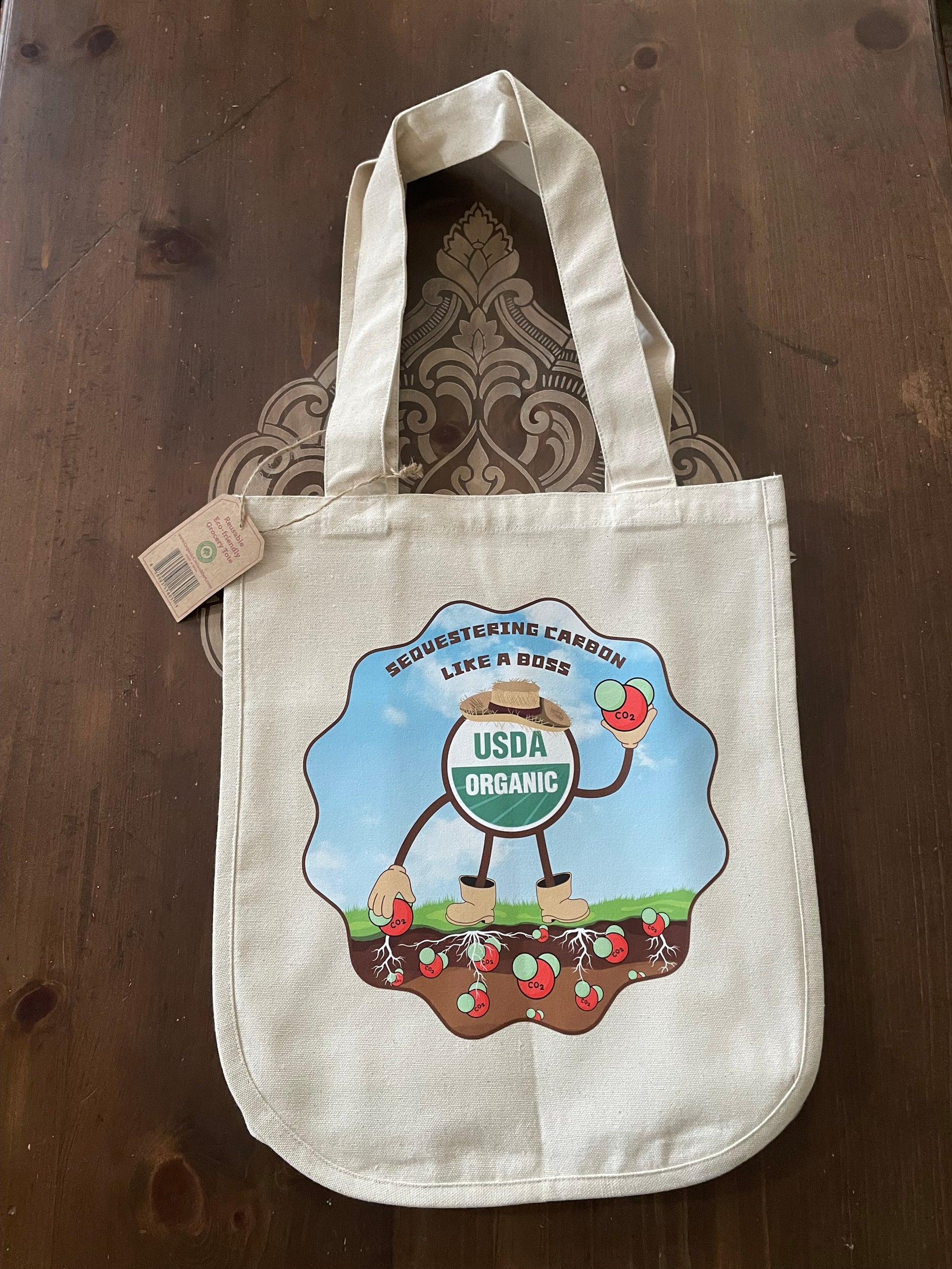 Anyway, I’m supposed to be trying to sell you a bag, so, why not solidify your support for organic agriculture by rocking this one-of-a-kind, custom bag.